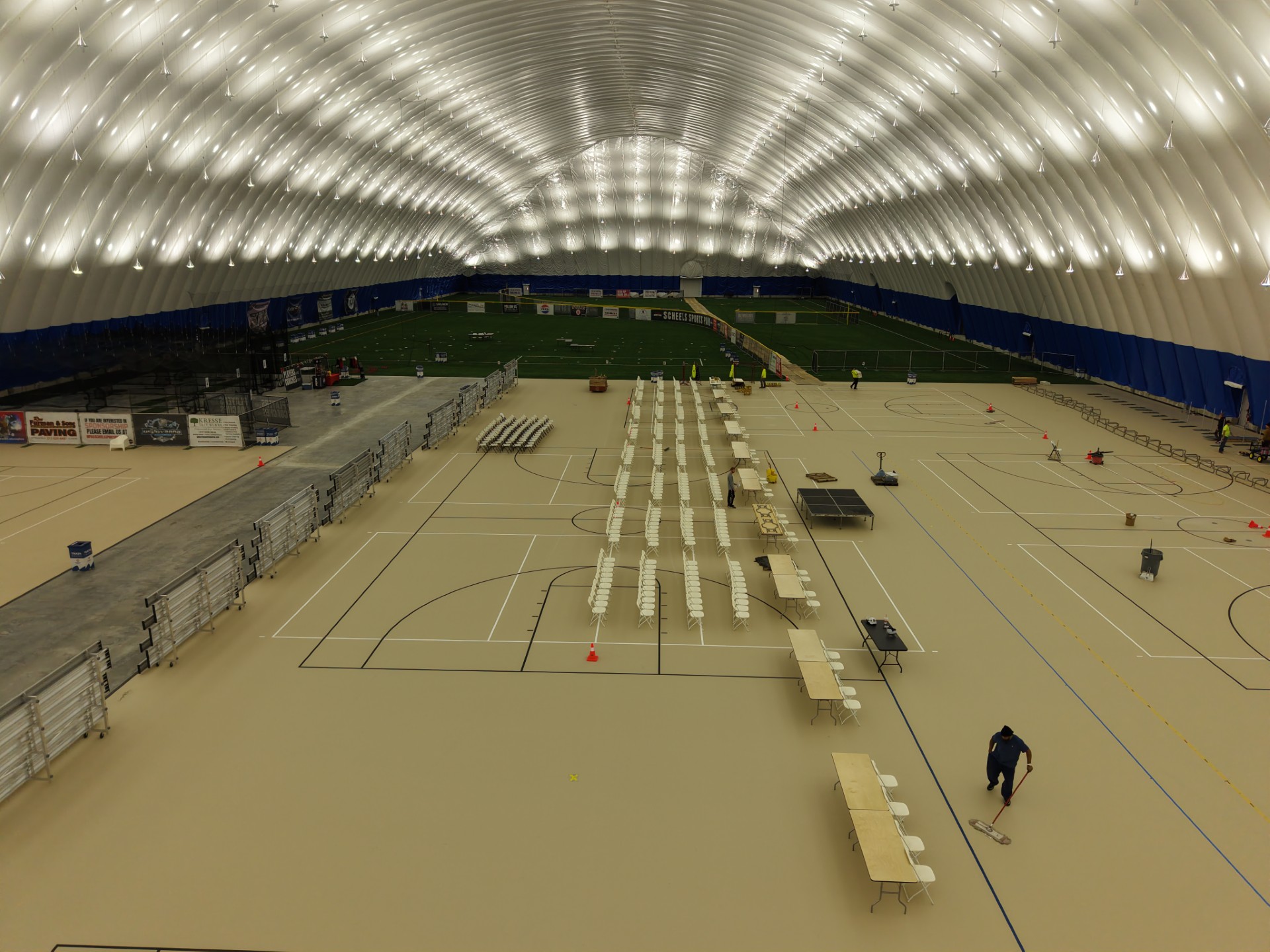 - 6 basketball or 12 volleyball courts